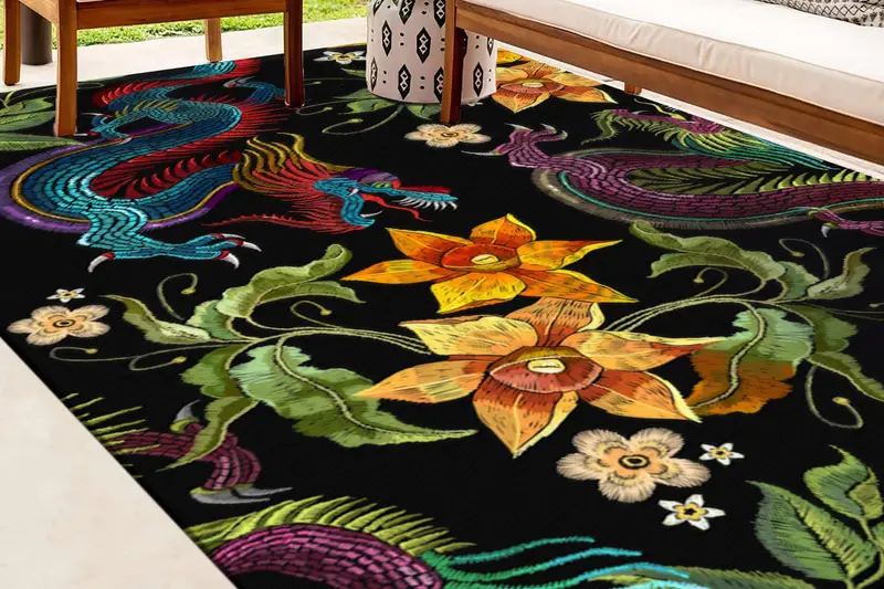 フローラルドラゴンアニメプリントラグ:日本風のホームアクセント