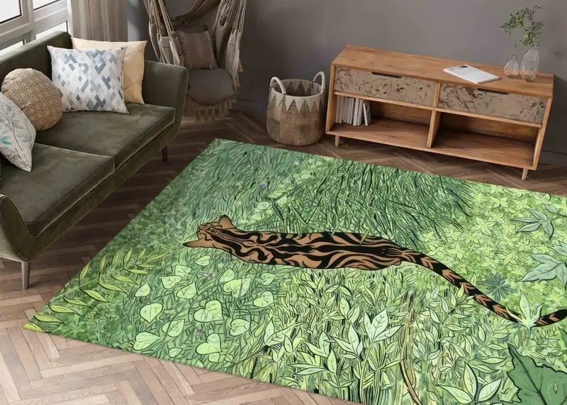 サファリ ワイルドライフ プリント ラグ: グリー...