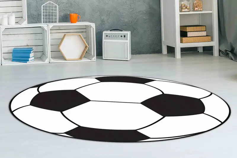 ラウンド サッカー ボール プリント ブラック & ホワイト プリント ラグ 男の子の部屋用