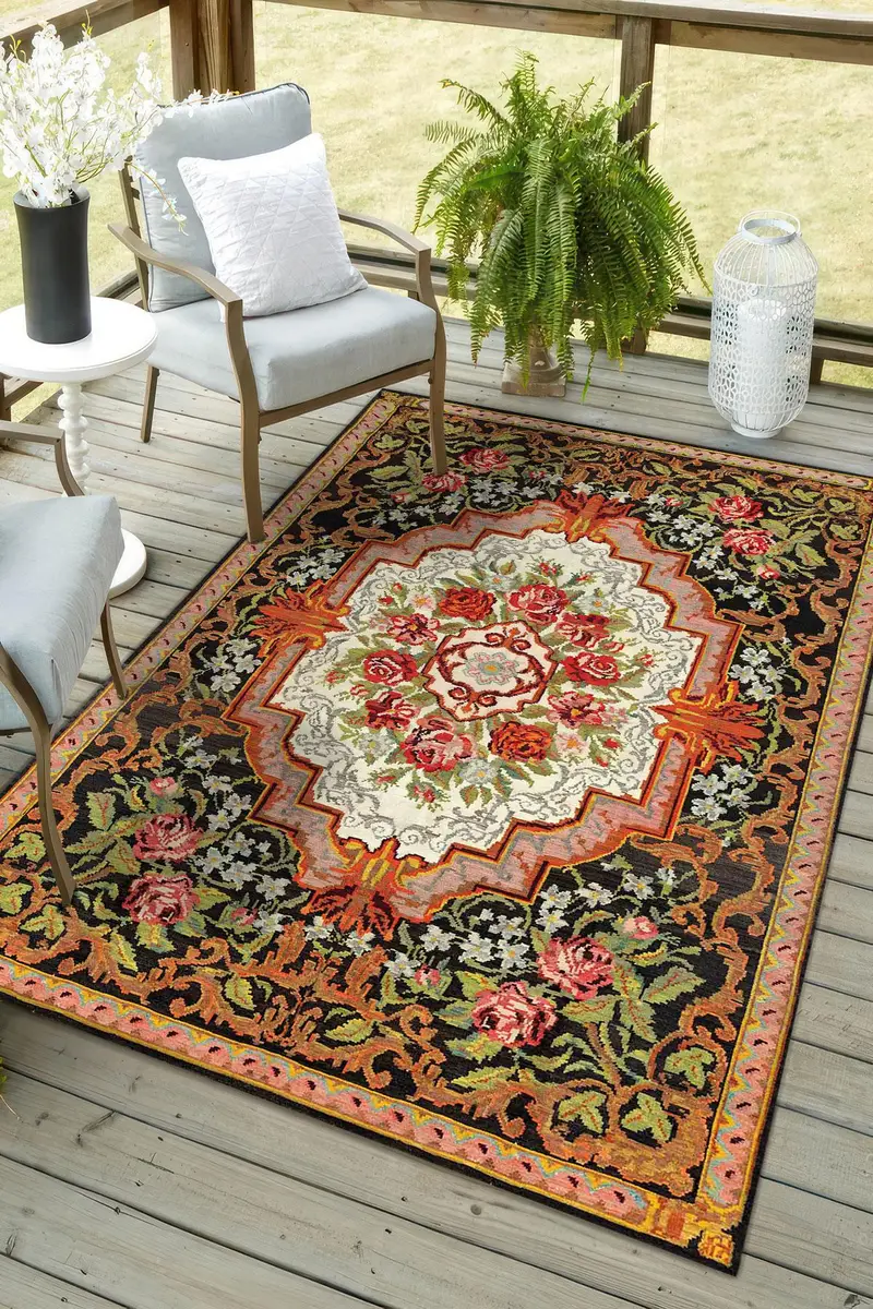 Sunrise Hues プリントラグ、モダンなリビングのためのヴィンテージデザイン