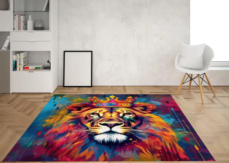 カラフルなライオンの抽象プリントラグ - モダンな動物デザイン