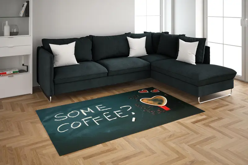 心のこもったコーヒープリントラグ:モダン、居心地が良く、キッチンの必需品