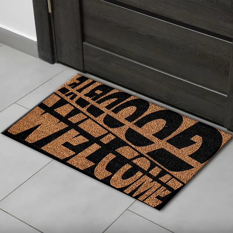 ウェルカムデザインプリントラグ - モダンコイルドアマット