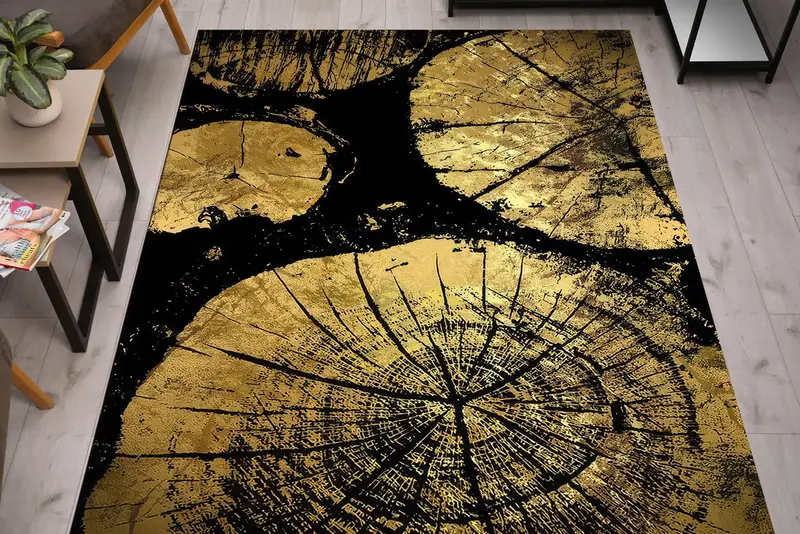 ゴールド & ブラック ウッド クラック パターン プリント ラグ - モダンなデザイン