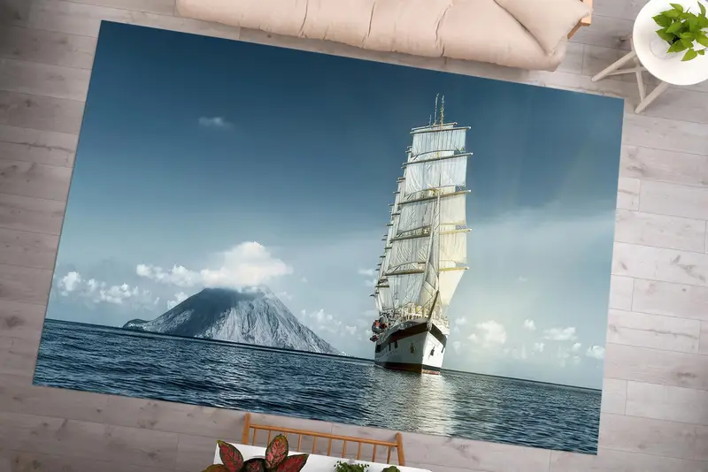 シースケープセーリングヨットプリントラグ - トロピカルシーランドスケープデザイン