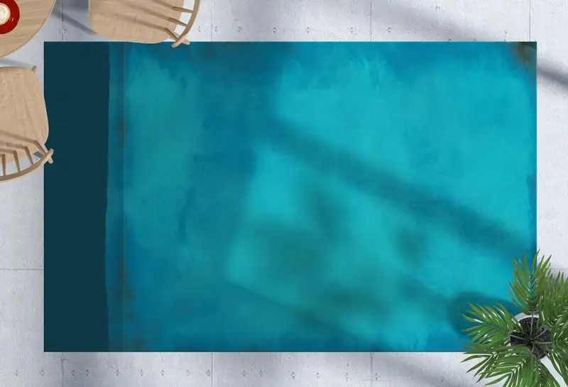 ターコイズ抽象モダンプリントラグ: ミニマルデザインエレガンス