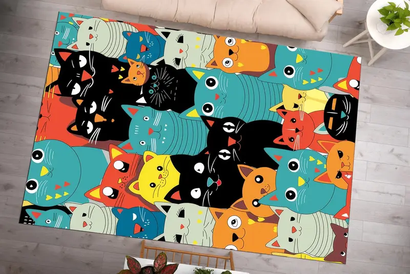 抽象的なカラフルな猫プリントラグ: モダンな動物デザイン