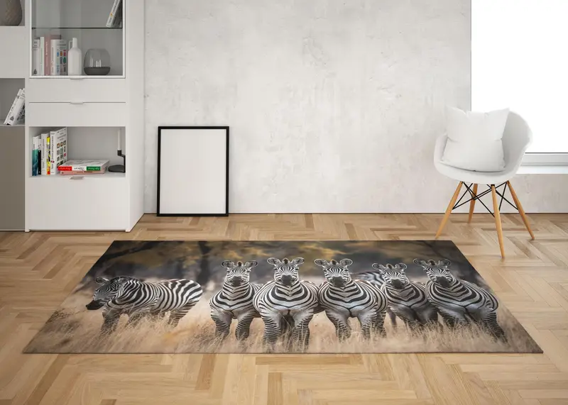 森の野生動物のアニマルプリントラグ、自然をイメージしたモダンな装飾