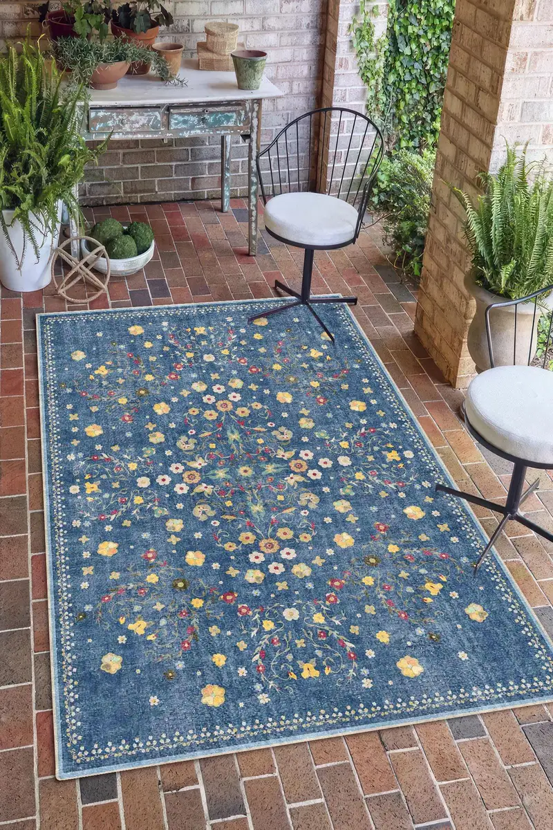 ヴィンテージ風のフローラルプリントラグ、アリュールコレクション