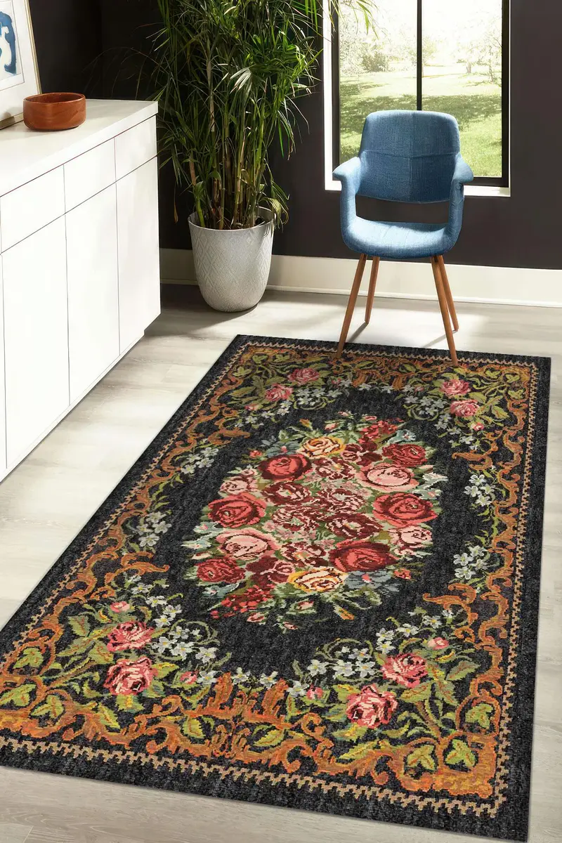 ヴィンテージ花柄プリントラグ: モダン、エレガント、時代を超越したホームアクセント