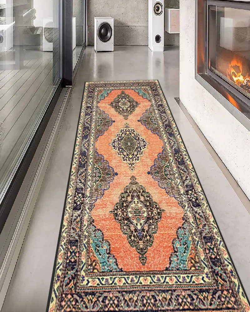 幾何学的なヴィンテージプリントラグ、モダンボヘミアンホームデコレーション
