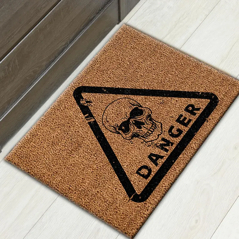 スカルモチーフコイアドアマット、危険デザインプリントラグ