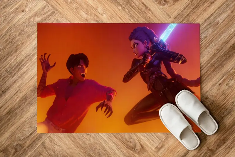 アニメ ウォリアー ガール SF キッズ プリント ラグ - モダン プレイルーム
