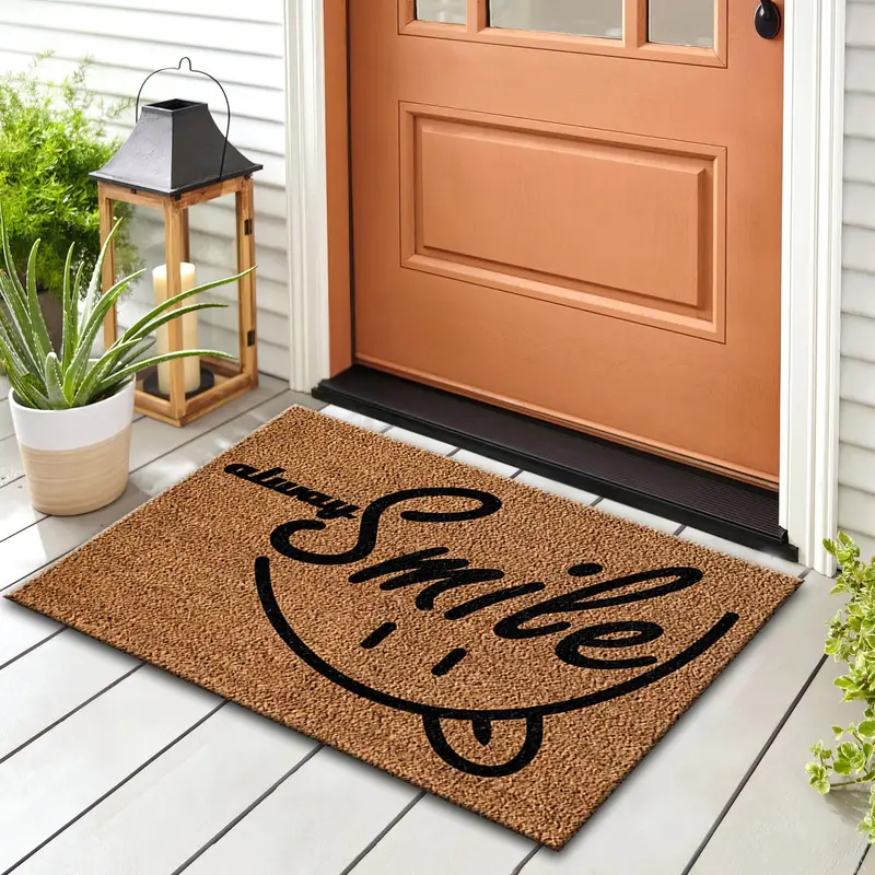 Smile Coir ドアマット: モダンで面白いプリントの家庭用ラグ