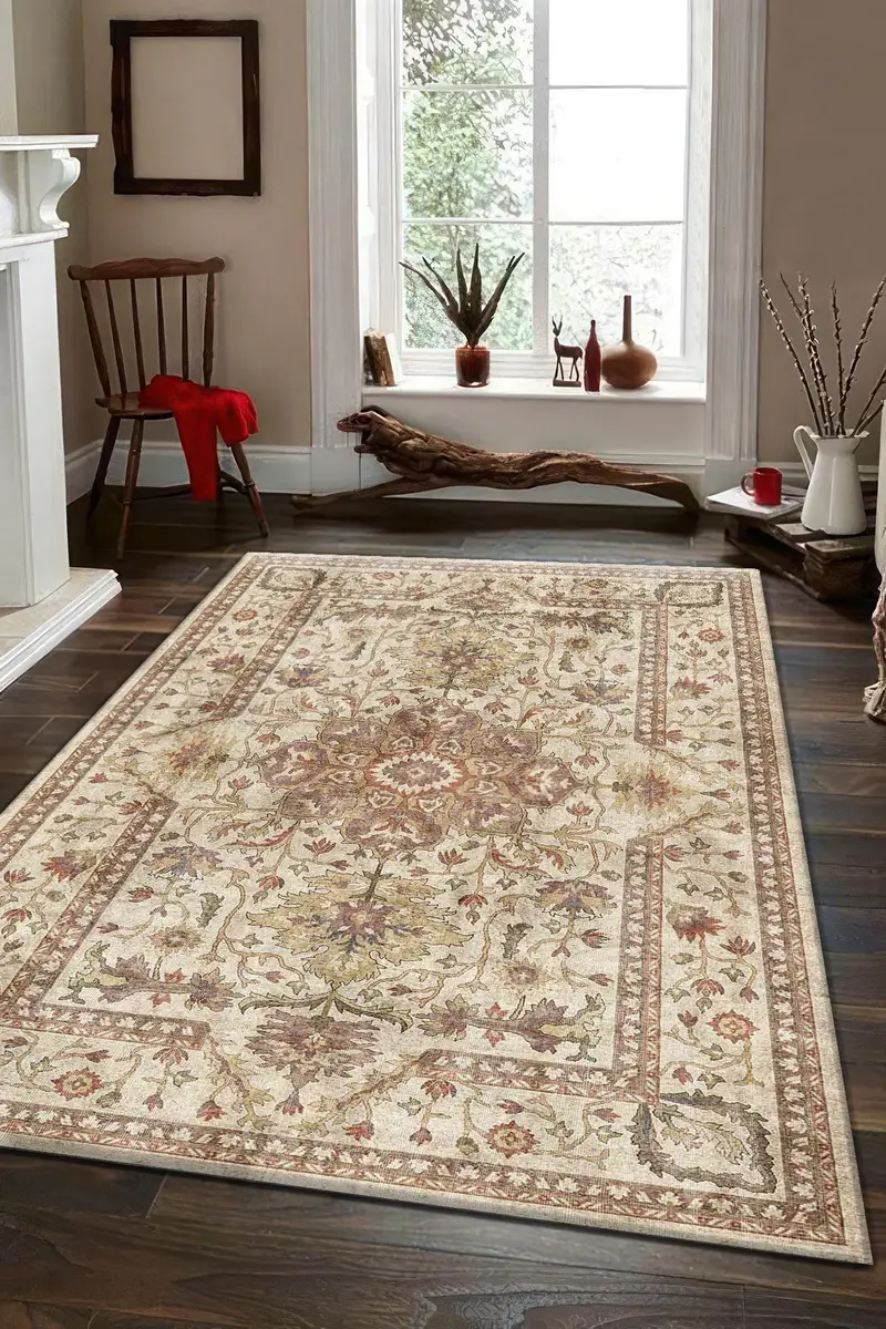 ヴィンテージ花柄プリントラグ - Kadife ベルベットテクスチャ、Tılsım デザイン