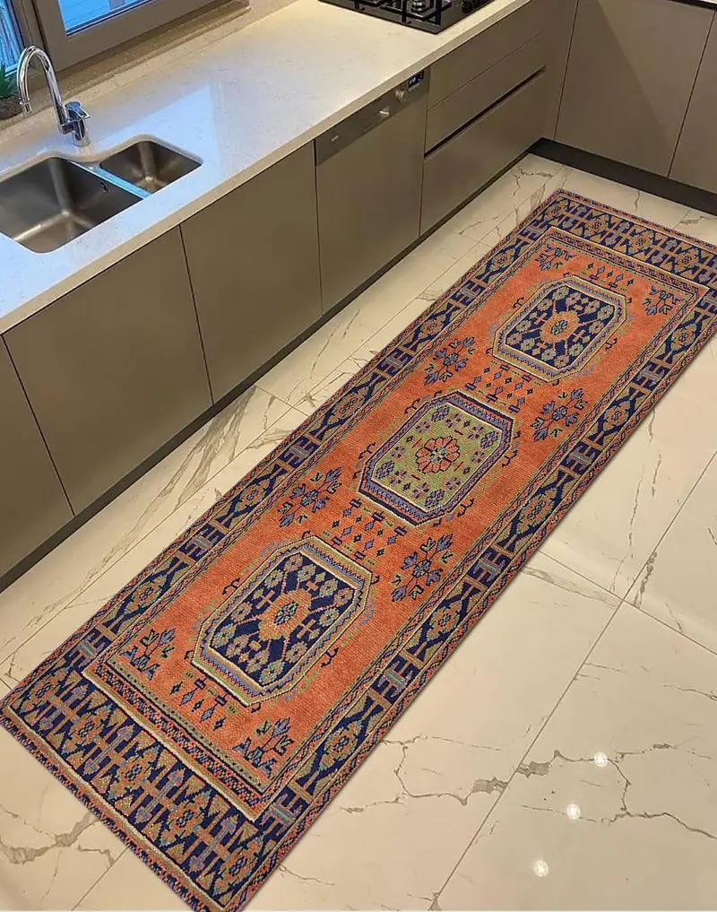 ヴィンテージボヘミアンプリントラグ、幾何学模様&モダンデザイン