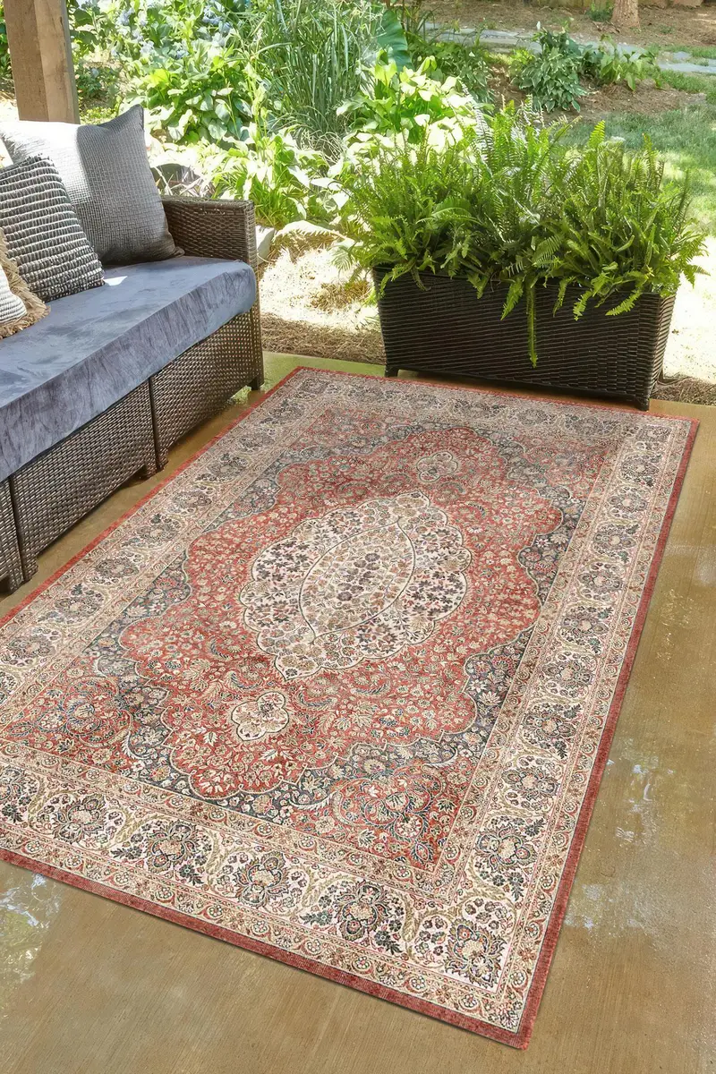 ヴィンテージ花柄プリントラグ、Kadife コレクション、時代を超越したエレガンス