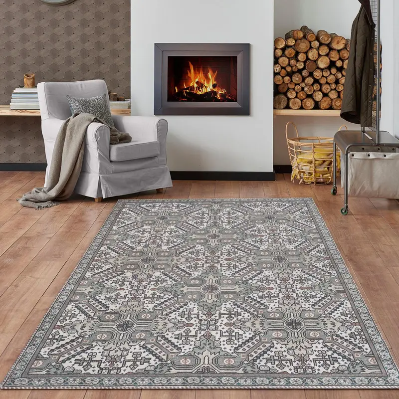 幾何学的なヴィンテージプリントラグ、レトロボヘミアンデザイン、ソフトタッチ
