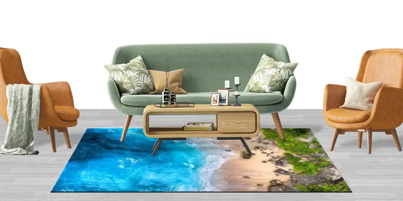 シースケープウェーブプリントラグ:沿岸海洋自然風景装飾