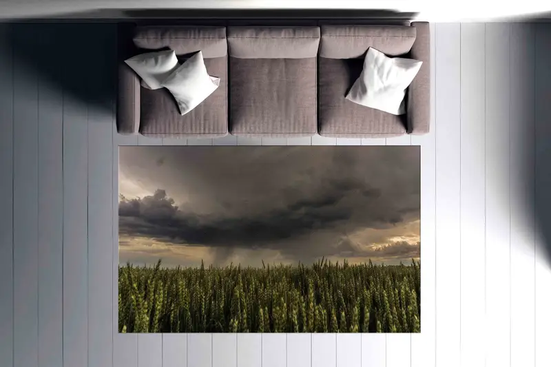 曇りの日の風景プリントラグ、自然をイメージしたホームアクセント