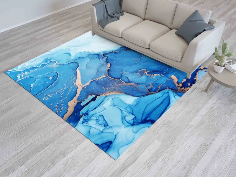 ブルーマーブルプリントラグ:現代的な豪華な大理石デザイン