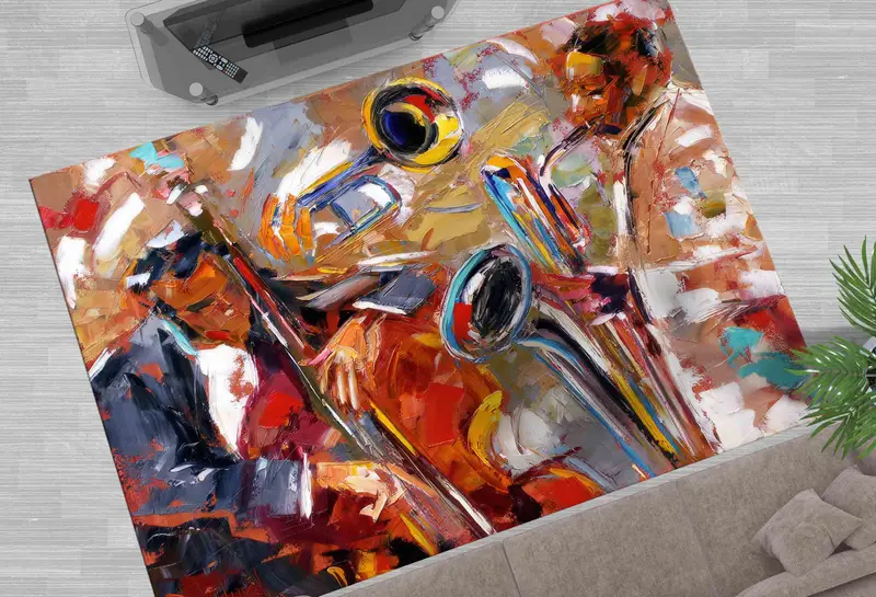 鮮やかなアフリカンジャズラグ、音楽愛好家のためのプリントデザイン