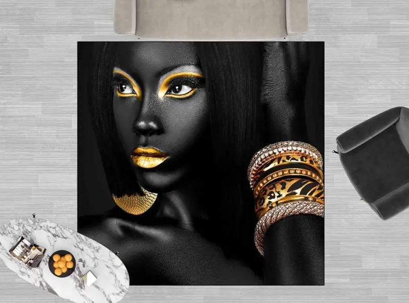 ジャジーなアフリカン プリント ラグ: ゴールド アクセント、豪華な室内装飾