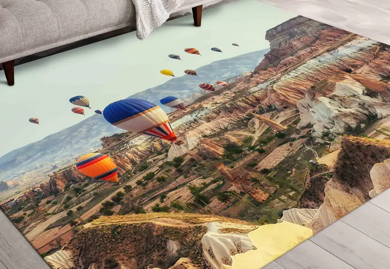 カッパドキアの日の出プリントラグ: 気球の風景の家の装飾