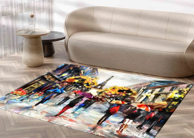 エッフェル塔雨の日プリントラグ、パリの街並みデザイン
