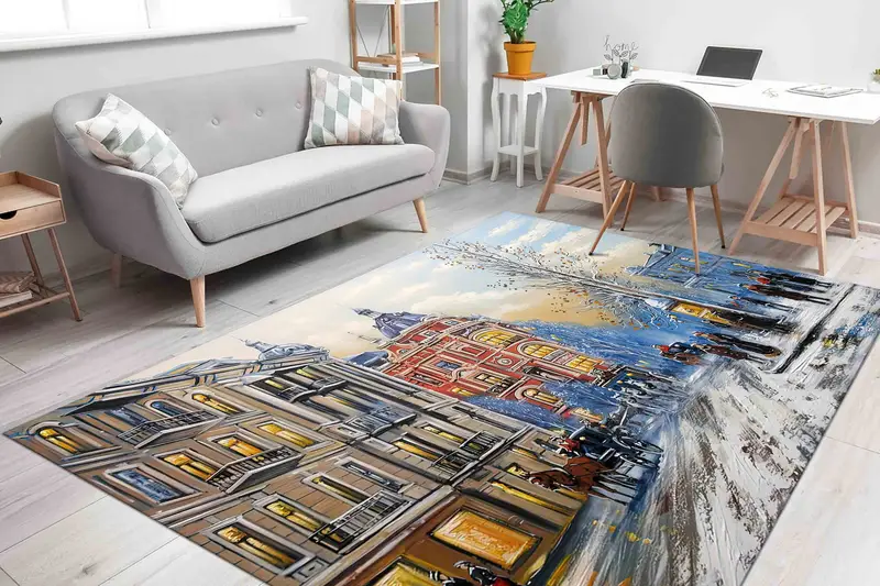 アーバンウィンターシーンプリントラグ:モダンな抽象都市景観デザイン