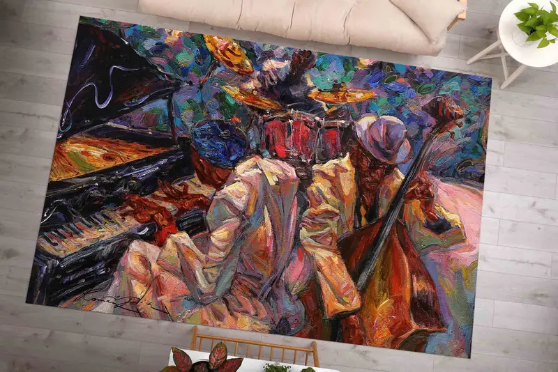 ジャズ メロディー アフリカン プリント ラグ: 活気に満ちたジャズ クラブ デザイン
