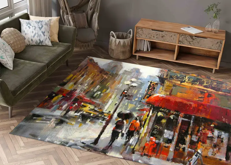 カフェの雰囲気のプリントラグ - モダンな都市景観デザイン