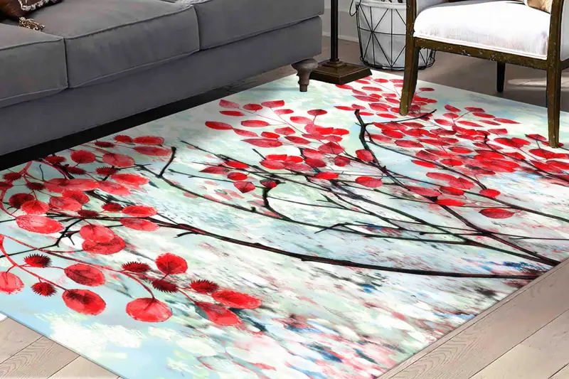 木の風景プリントラグ:モダンな農家の秋の装飾
