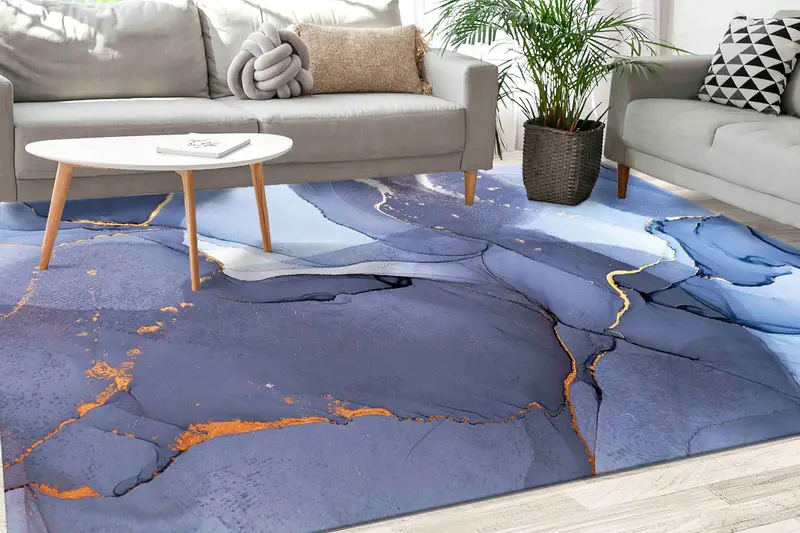 大理石効果プリントラグ: パープル、ブルー、豪華なデザイン