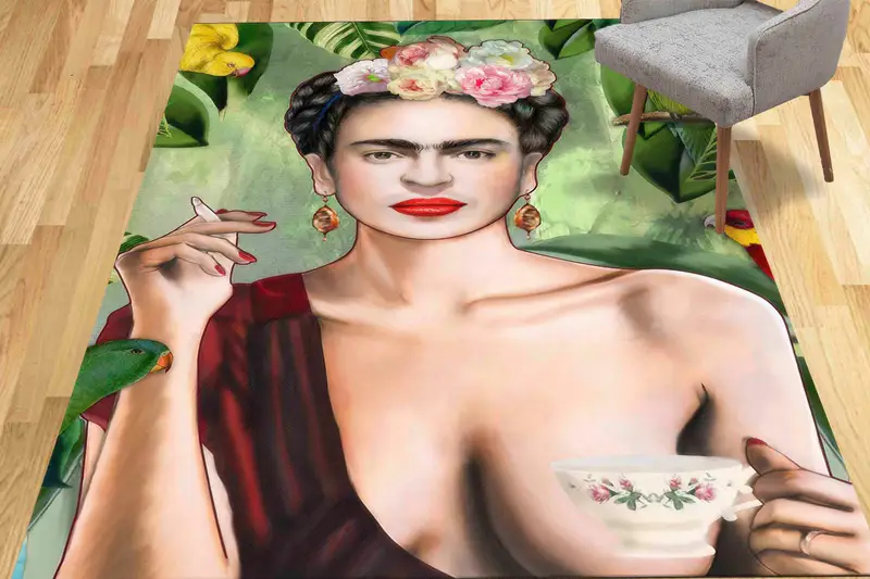 やる気を起こさせるフリーダ・カーロの鳥のジャングルプリントラグ、鮮やかなデザイン