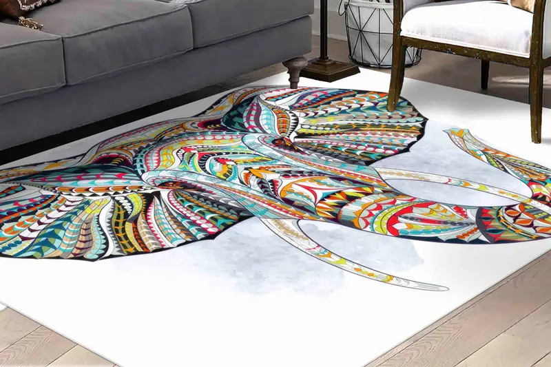 カラフルな象プリントラグ:モダン、エスニック、サファリデザイン