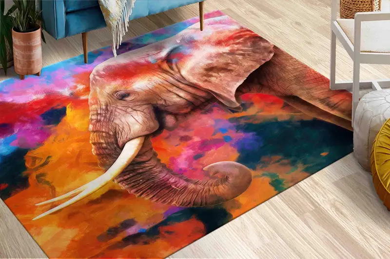 カラフルな抽象的な象プリント ラグ - モダンなアフリカのサファリ デザイン