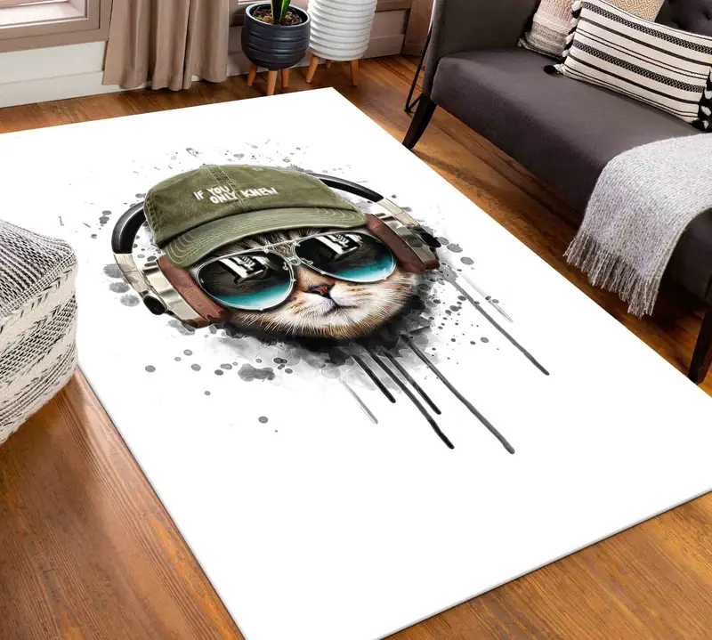 抽象的な猫の雰囲気をプリントしたラグ: モダン、キュート、コンテンポラリーなデザイン