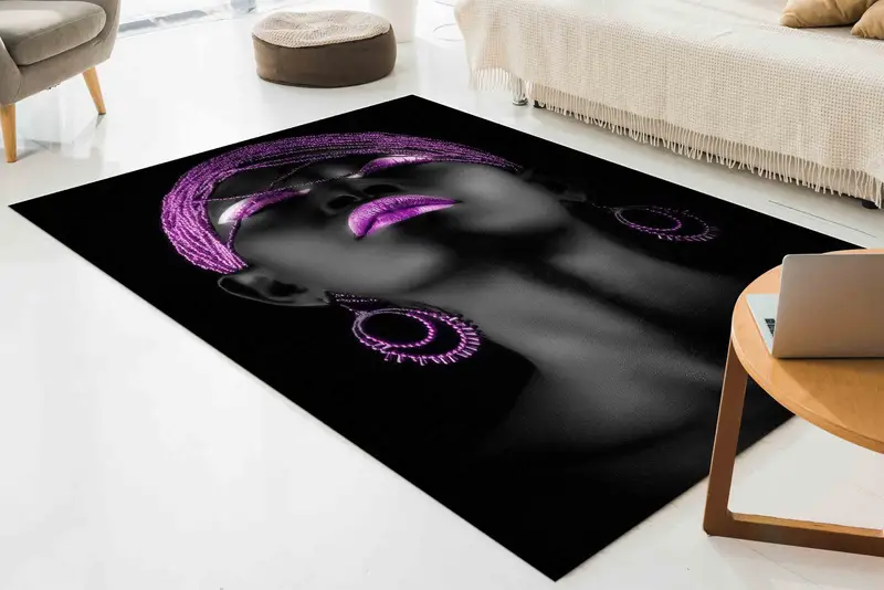 きらめくパープル & ブラックのアフリカン ジャズ プリント ラグ