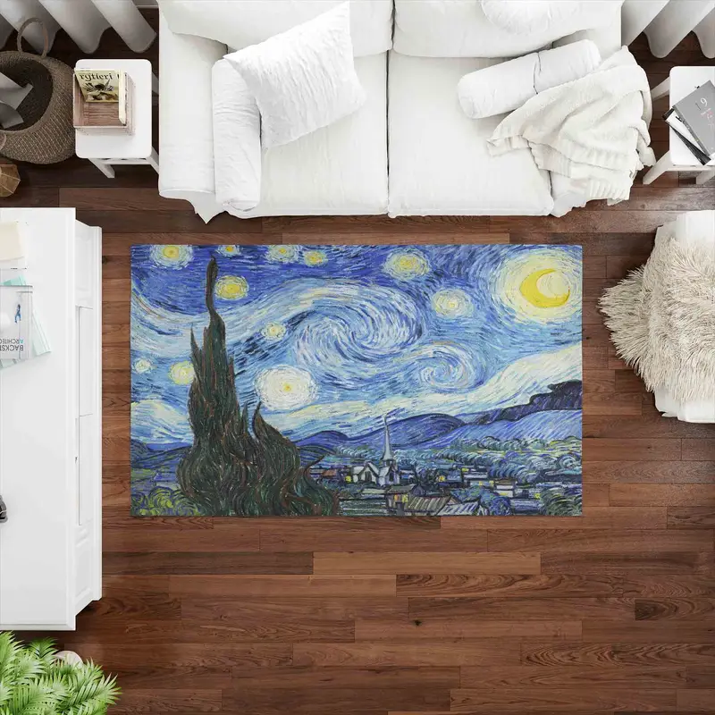 星月夜のブルー プリント ラグ: ヴィンセント フ...