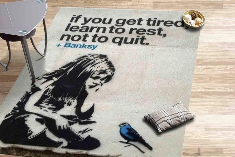 少女と青い鳥のアート プリント ラグ - バンクシーにインスパイアされたデザイン