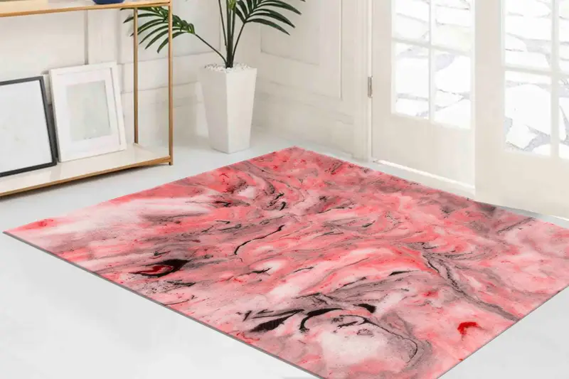 レッドマーブルプリントラグ: モダンな空間のための現代的なデザイン