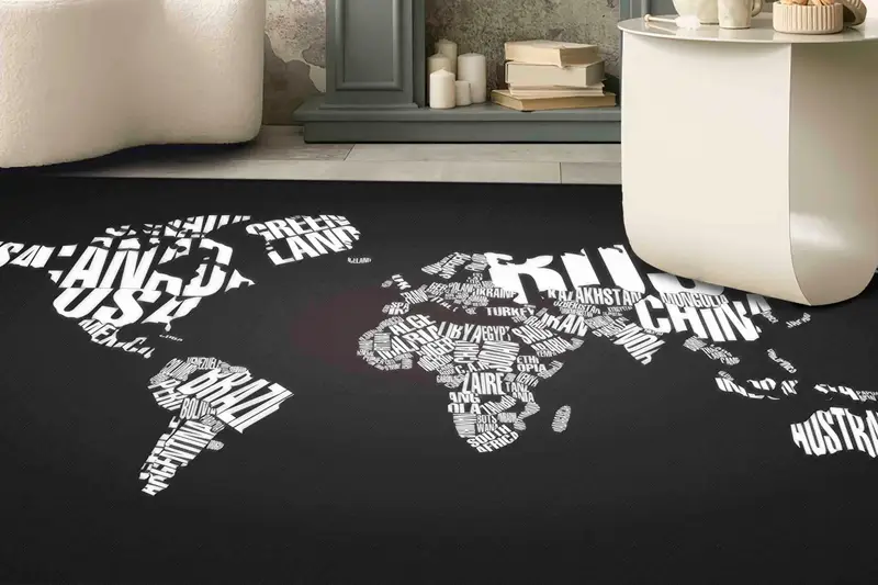 モノクロ地図プリントラグ: オフィス、学校用のモダンな抽象デザイン