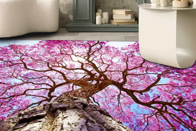 オータムパープルツリーフローラルプリントラグ:自然からインスピレーションを得た装飾