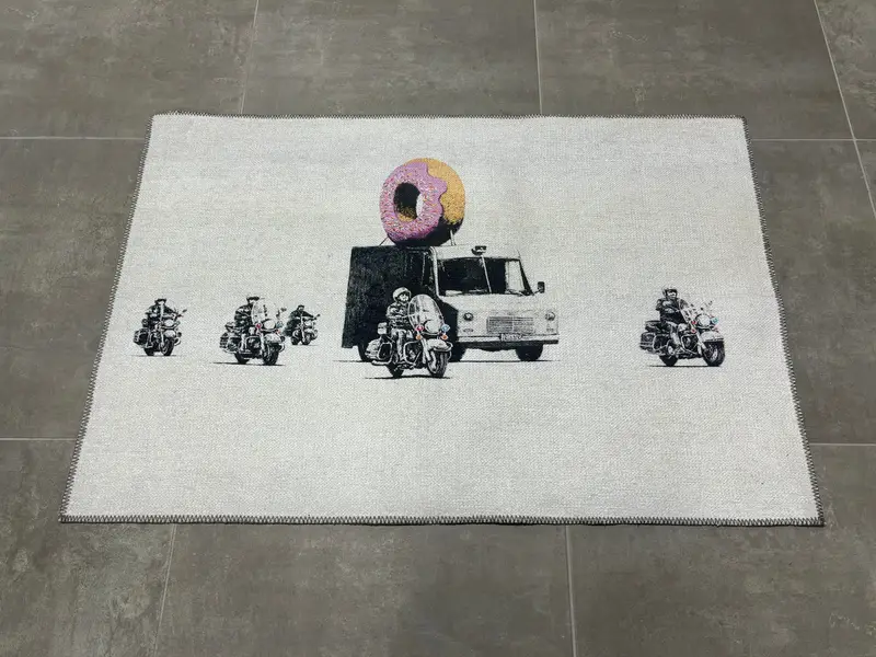 バンクシー アート プリント ラグ: ピンク ドーナツ グラフィティ デザイン