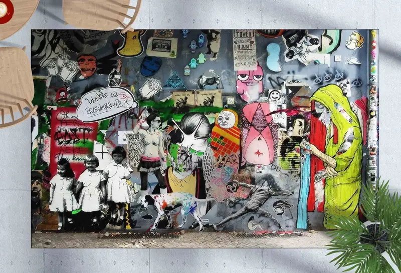 鮮やかなバンクシーグラフィティアートプリントラグ、モダンな室内装飾