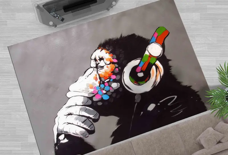 グラフィティ モンキー プリント ラグ: モダンなスペースのためのバンクシー アート