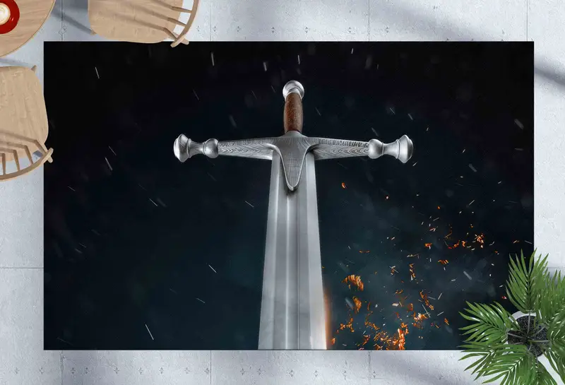 サムライソードデザインプリントラグ、モダンクレイモアブレードパターン