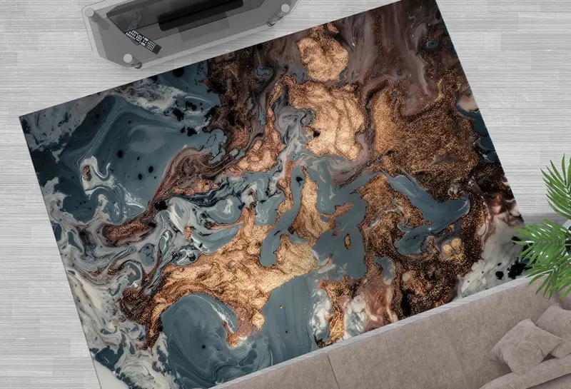 きらめく大理石プリントラグ: モダン、グレー、ラグ...