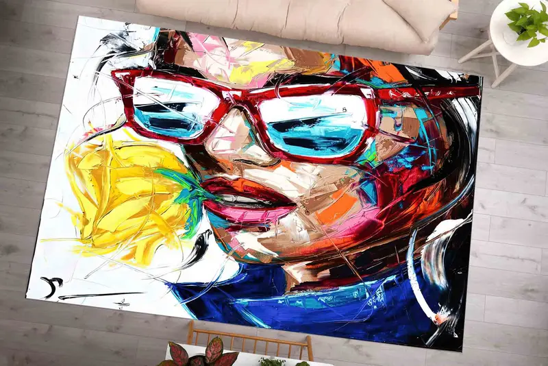 セクシーな女性のグラフィティ プリント ラグ: ローズ、ポートレート、ストリート アート デザイン